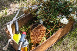 Centuries of practice resulted in the development and refinement of the optimal technique for making beehives andrational methods for attracting swarms and caring for bees. Specialised tools, as well as beekeeping rituals, traditions and laws, were also developed. The beekeeping profession was usually passed down through the generations, with people learning to follow the bees from their parents from a young age and acquiring beekeeping skills through practical experience. Beekeeping tools and equipment have survived almost unchanged to this day. They were used throughout the region.